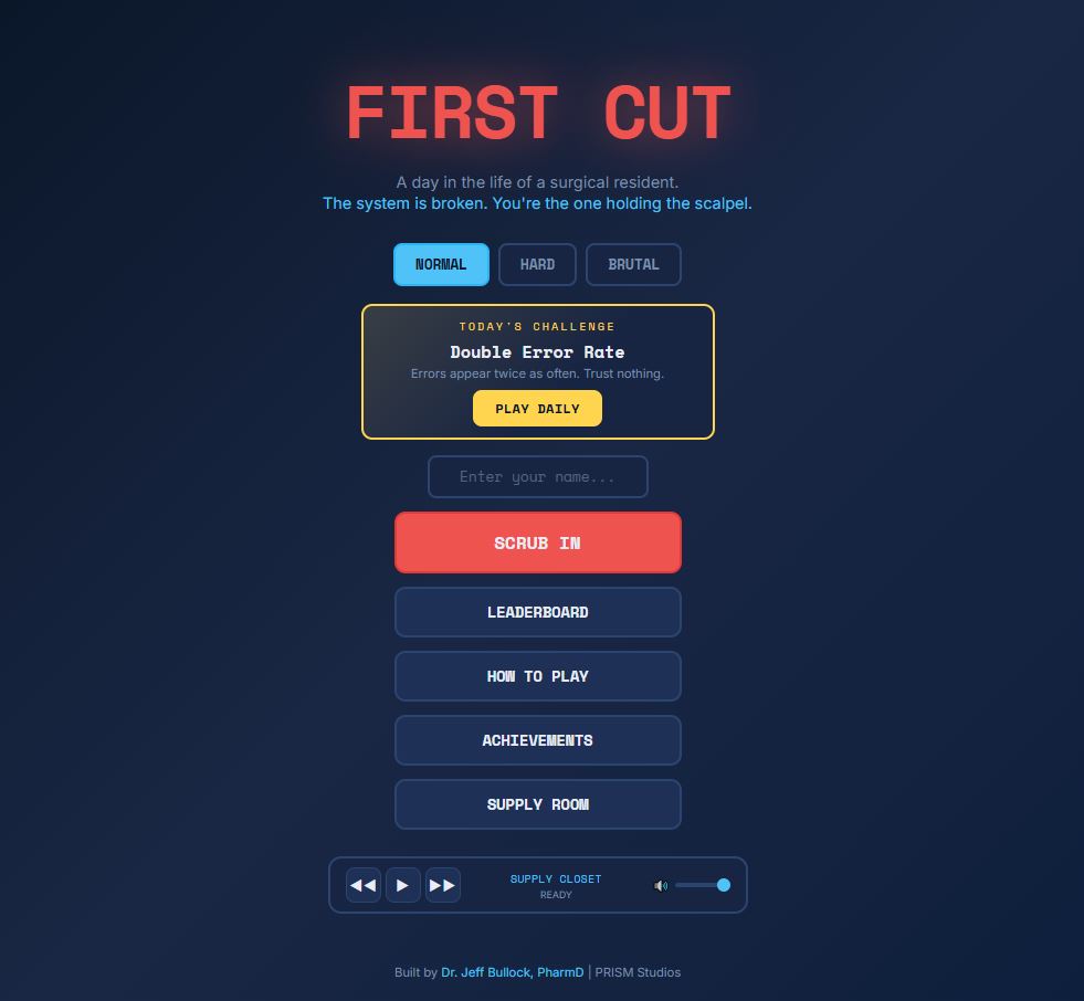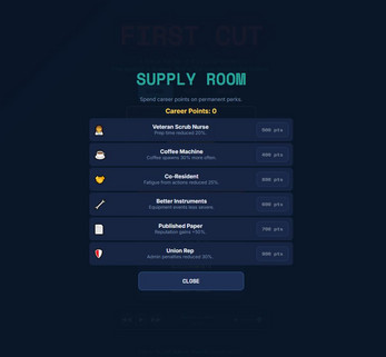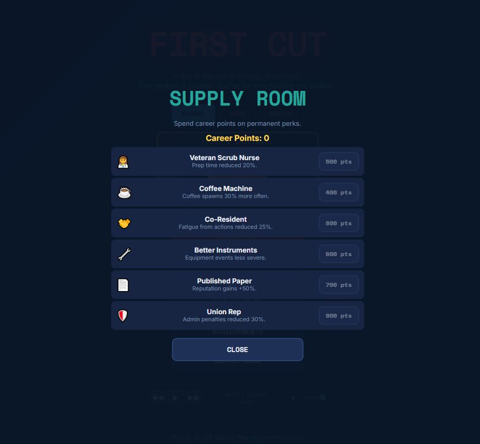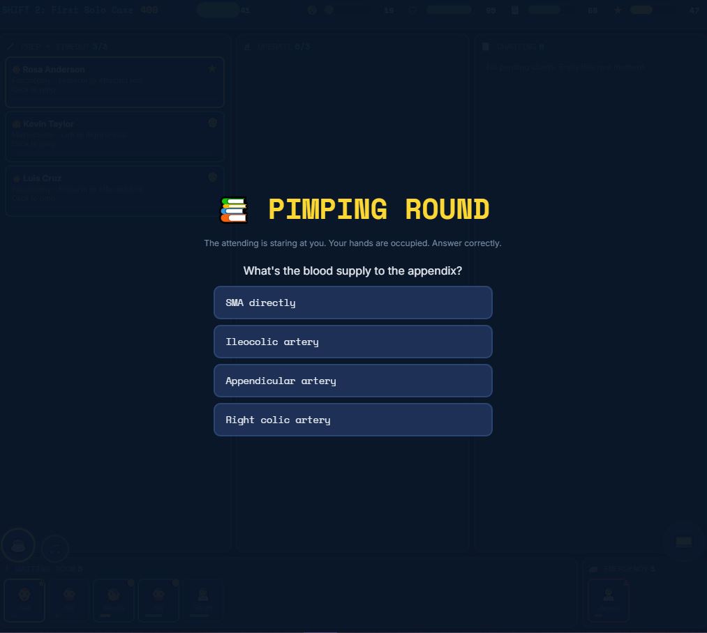 Survive 10 shifts as a surgical resident in a healthcare system designed to break you. Accept patients, prep for surgery, verify correct procedures, operate, chart, and answer pages — all while managing four meters that determine your fate.